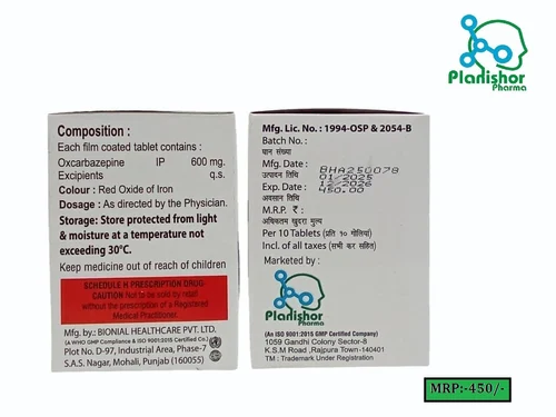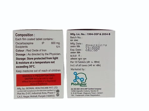 | Composition | OXCARBAZEPINE 600MG TABLETS |